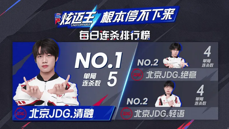 单杀数:JDG丶轻语 (谢欣臻)、@佛山drg花缘 (谭锦威)